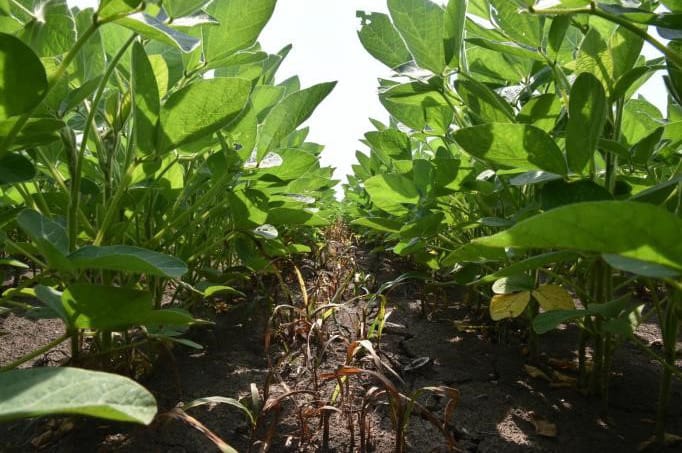 A fully functioning soybean crop canopy following successful weed control. Photograph: Donal Murphy-Bokern