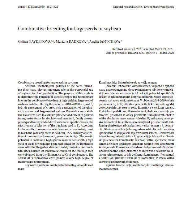 An innovative approach for the assessment of Bulgarian soybean cultivars