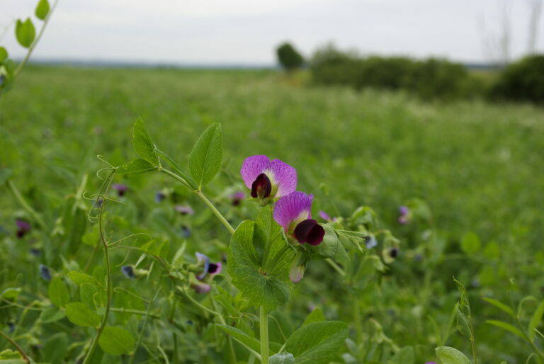 Flowering field pea in farmers field[/caption]