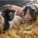 Schwäbisch Hällische Schweine auf Stroh.