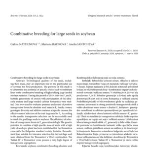 Technological qualities of the seeds, including their mass, play an important role in the purposeful use of soybean for food production. The purpose of this study is to determine the potential of specific crosses and recombinant lines in the combinative breeding of high yielding large-seeded soybean varieties. During the period of 2018-2019 the F3 and F4 hybride generations of crosses with participation of the ultra-early mature and large-seeded cultivar Romantica were studied. Data were used to evaluate: presence and extent of positive transgressive forms by absolute seed mass in F3 family crosses; genotypic diversity and additive variance at specific crosses; the effectiveness of selection of the trait large seed in F3. According to the results, transgressive selection can be successfully used to reach the goal large seeds in soybean. The efficiency of selection of transgressive forms in F3 generation is high. The genetic potential to combine a high specific mass of seeds with a high yield of seeds per plant has been established for the Romantica cross with the Bulgarian standard variety Srebrina. Recombinant lines suitable for intensive selection for the trait lage seed were obtained from the ‘Romantica’ x ‘Oria’ combination. The ‘Saikai 20’ x ‘Romantica’ cross possess a very high degree of transgressive segregations.