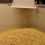 Figure 2. Cleaned and size sorted faba beans fed into silo.