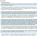 First, the seeds are cleaned of debris, sieved to include seed sizes of 6 mm – 10 mm, and poured into 750 kg container bags. Seeds that are too small or too large are not suitable for processing, mainly due to equipment limitations, and can be sent for livestock feed. The cleaned beans of the correct size are then put through the processing stages described in table 2.
