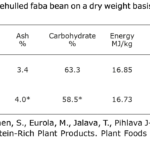 • Zeichenflache-1@4x.png: Table 1. Composition of whole and dehulled faba bean on a dry weight basis. Starred differences are statistically significant.
