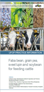 This UFOP publication provides an overview of the composition, feeding value, and possible uses of grain legumes in ruminant feeding. In particular, the results of feeding trials over the last ten years are considered. For faba bean, both white-flowered and coloured-flowering varieties are considered. For pea, the focus is on white-flowered varieties. These dominate the market but coloured-flowered varieties are suitable for feeding ruminants. Sweet blue lupin and white lupin are also considered. Full-fat soybean is the most important feedstuff from domestic (European) soybean cultivation.