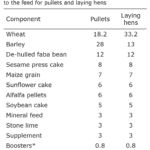 • PN24_Table1_new-1.png: Table 1. The contribution (%) of the feed components to the feed for pullets and laying hens