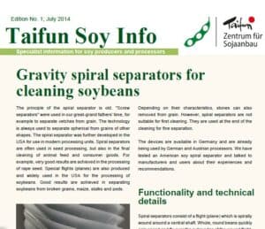In this Taifun Soy Info, Taifun Tofu describes the gravity spiral separator for soybeans, which is not a precision device - but it trumps with its simple construction, great robustness, simple operation and a very favourable price.