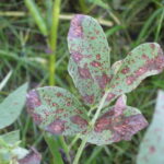 Downy mildew requires cool growing conditions. It was widespread on faba bean in the cool summer of 2017 in the Nordic and Baltic countries, but is otherwise rare in this region. Rust of both legumes is a disease of warm, humid conditions and arrives late in the growing season in this region when it causes no detectable damage. Chocolate spot disease is almost universally seen as a few spots on faba bean leaves and is not a serious problem until the weather conditions are right, typically 20–22°C with nearly 100% humidity and damp leaf surfaces. In this situation, generally predictable from the weather forecast, the whole plant stand can be killed in 48 hours, so rapid fungicide treatment is vital.