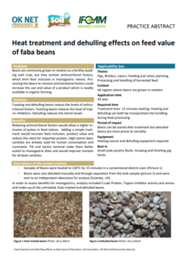 Beans are commonly grown in rotation as a fertility-building cash crop, but they contain antinutritional factors, which limit their inclusion in monogastric rations. Processing the beans to remove antinutritional factors could increase the use and value of a product which is readily available in organic farming. Toasting and dehulling beans reduce the levels of antinutritional factors. Toasting beans reduces the level of trypsin inhibitors. Dehulling reduces the tannin levels.