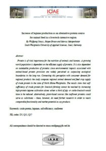 Protein is of vital importance for the nutrition of animals and humans. A growing world population is dependent on the efficient supply of proteins. It is also dependent on sustainable production of proteins since environmental impacts associated with animal-based protein provision are widely perceived as surpassing ecological boundaries in the long run. Connecting this perception with consumer demand for regional products the study computes regional animal demand and feed crop supply of crude protein in the state of North Rhine-Westphalia. The results show that selfsufficiency of crude protein for livestock farming cannot be reached by increasing high-protein legume cultivation alone: either a third of pig-or cattle-livestock would have to be reduced. Alternatively, plant-based sources like sunflower proteins could serve as substitutes–these, however, do need further research in order to reach comparable functionality and market potential as soy products.