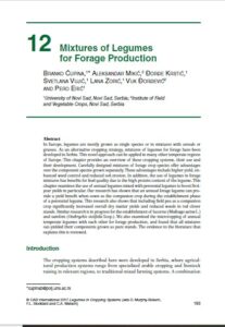 Ćupina, B., Mikić, A., Krstić, Ð., Vujić, S., Zorić, L., Ðorđević, V. and Erić, P. (2017). Mixtures of legumes for forage production. In: Murphy-Bokern, D., Stoddard, F. and Watson, C. (Eds.). Legumes in cropping systems. CABI.