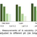It has long been known that factors such as extraction time, pH, ionic strength, and temperature affect protein solubilisation and this seems to be particularly evident for grain legumes. De Jonge et al. (2009) showed that there were large effects of pH on N solubility (Figure 1), with much lower solubility at lower pH levels (5.0–5.6) that are quite common in high producing ruminants.