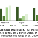 • Zeichenflache-1@4x.png: Figure 3. Estimates of N solubility (%) of grain legumes using pH 6.8 buffer, pH 5 buffer, water, or zero-time nylon bag incubation (de Jonge et al., 2009).