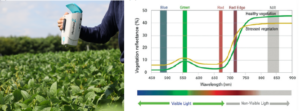 Soybean is the major crop for high-protein feed and food in Europe, however domestic production is low due to non-adapted varieties for drought events and time to maturity. Especially, drought stress during growing season can cause severe yield loss in soybean. The present work focused on phenotyping of European soybean varieties of maturity groups (MG) 000 – I, grown in Tulln (Austria) under rainfed conditions. Phenotyping traits were visually scored and screened by hyperspectral and thermal imaging (TIR) techniques. Varietal differences in time to flowering, time to maturity (ttm), plant height, stomatal density, yield, 16 hyperspectral reflectance indices and canopy temperature were examined. Furthermore, TIR method was evaluated for two daytimes (12:00h, 15:00h) and applied for simplified Crop Water Stress Index (siCWSI). Results showed significant differences in ttm between MG. Plant height showed a positive relationship with ttm, while yield reached an optimum at MG 00. Stomatal density of European soybean varieties was published first time: stomatal density was significantly different and ranges between 203.4 and 322.2 stomata/mm². Soybean of MG 000 showed significant correlation between yield and chlorophyll index, red edge inflection point, water indices WI-1, NWI-2 and NWI-4. Later maturing soybean sets had less relationship between indices and yield. Correlation between siCWSI and morphological traits were higher at 15:00h than at 12:00h. Plant phenotyping is a crucial process to improve genetic material due to drought tolerance and ttm and predicting yield. These findings will contribute to a better understanding of varietal differences in European soybean varieties.