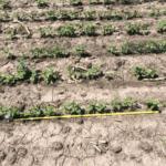 Răsaduri de soia, rând îngust semănate în rânduri de 150 mm.