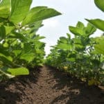Полностью функциональный растительный покров посевов сои после успешной борьбы с сорняками.
