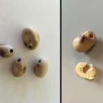 Samples of grain from 48 commercial faba bean crops grown across Ireland in 2018-2020 were assessed by Teagasc for damage associated with bean weevils (holes were adults emerged) to ascertain whether this emerging pest is reaching economically significant levels in Ireland when the crop to be sold for human consumption. The majority of crops (69%) had no seed damage. 17% were damaged with less than 2% of seed affected, 6.3% presented seed damage between 2-5%, and 8.3% presented more than 5% of seed damaged.